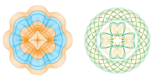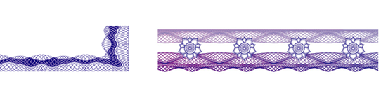 其防偽原理是將文字縮小到一定的程度,以字代替線,一根細(xì)細(xì)的線,仔細(xì)一看卻發(fā)覺是由文字構(gòu)成,再結(jié)合版紋的其它功能,便可以將文字線生成許多變化。